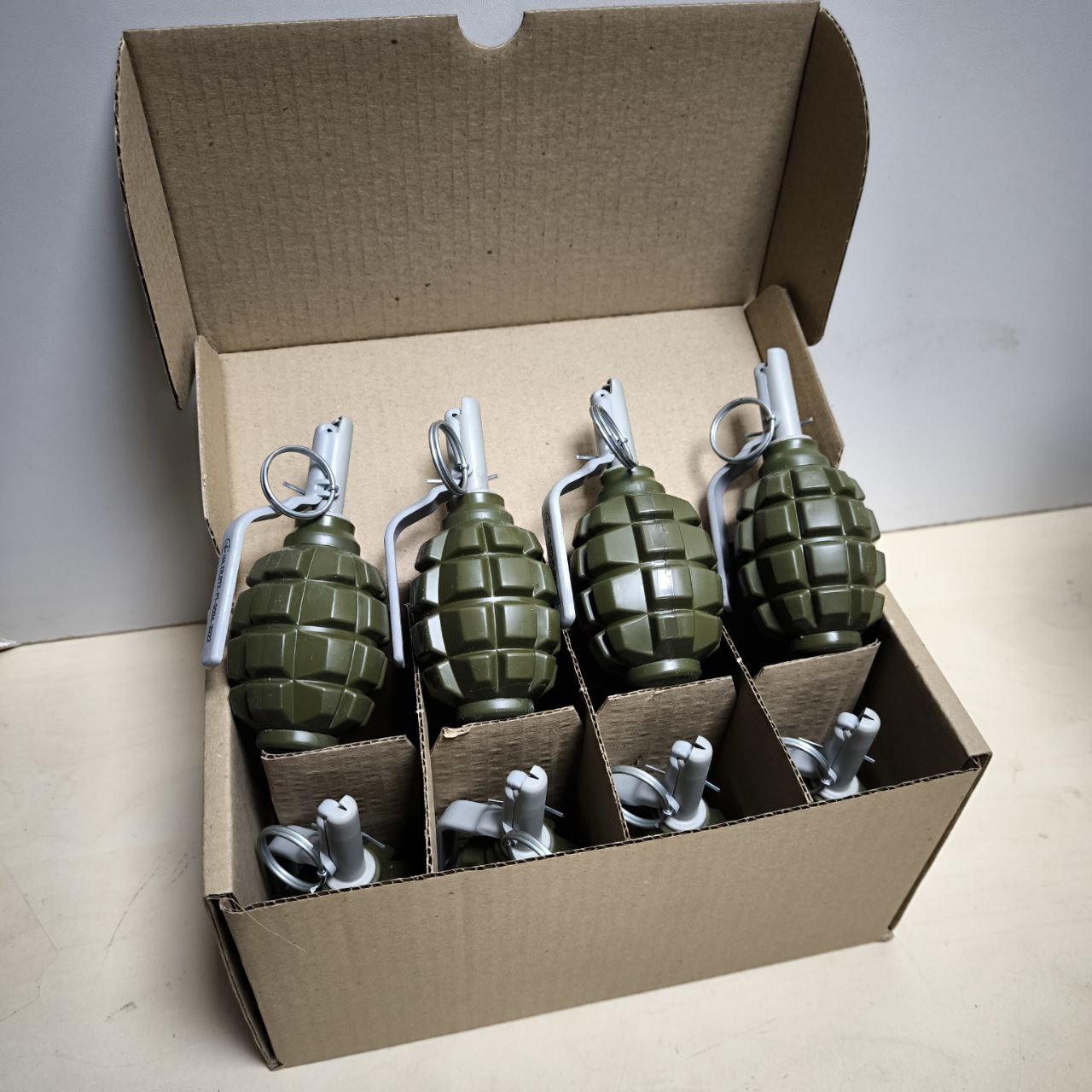 Страйкбольні гранати ПІРО-Ф1 М – це навчальні модифікації імітаційно-тренувального типу, зовні максимально подібні до справжнього ручного боєприпасу оборонної групи Ф1. Виконані у високій якості українським виробником PYROSOFT. В цьому випадку доступні для придбання в наборі (8 штук у ящику). Рекомендуємо купувати навчальні гранати саме наборами, позаяк так забезпечуються додаткові цінові вигоди.