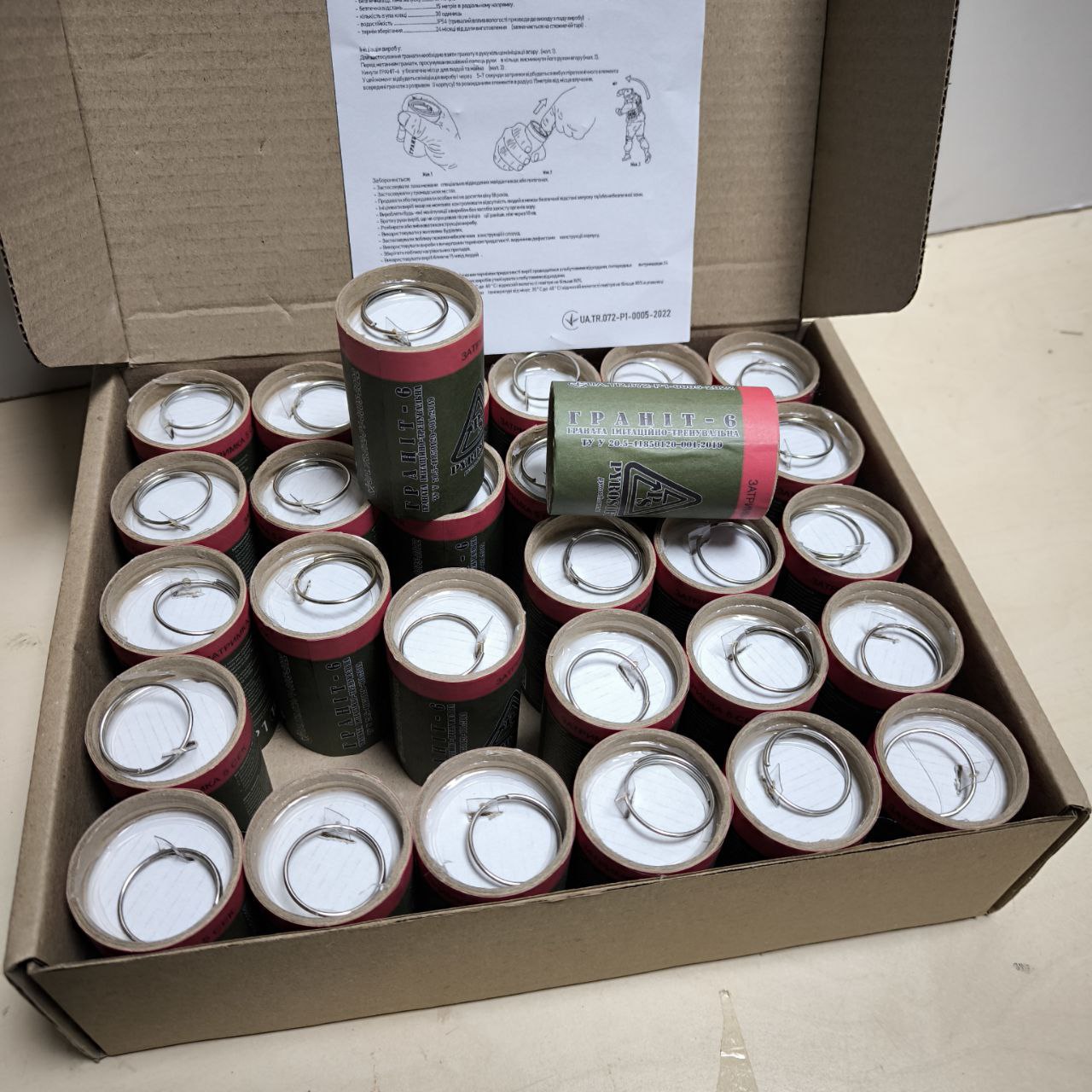 Навчальна граната Страйкбольна граната Граніт 4 з горохом, набір 30 шт потужна з чекою, начинка Горох, для страйкболу - з чекою, висмикуєте чеку, 4-5 сек і вибух.