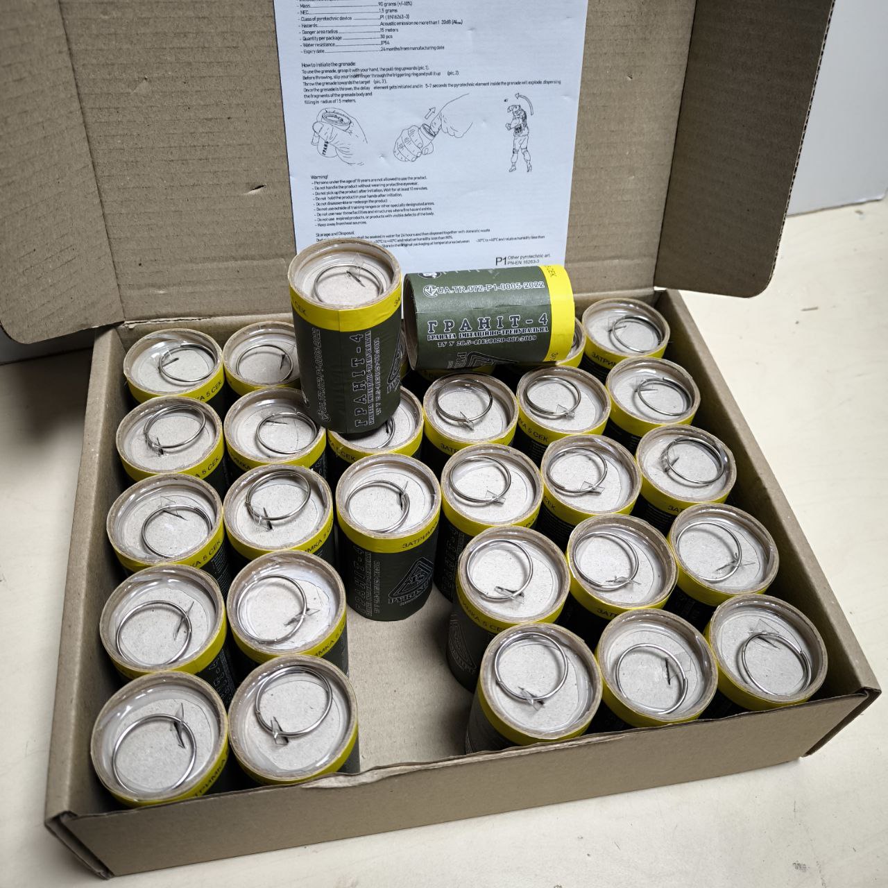 Навчальна граната Страйкбольна граната Граніт 4 з горохом, набір 30 шт потужна з чекою, начинка Горох, для страйкболу - з чекою, висмикуєте чеку, 4-5 сек і вибух.
