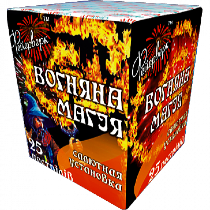 Салютна установка SU-3 Вогняна магія від ТМ Феєрверк заряджена на 25 пострілів, калібром 25.