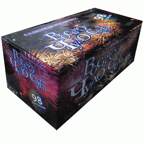 Салют калібром 25 мм випускає 98 пострілів. Висота вильоту досягає 35 м, феєрверк працює близько 120 секунд. Ви зможете побачити 10 різних ефектів. Цей салют додасть більше яскравих вражень на будь-яке ваше свято.