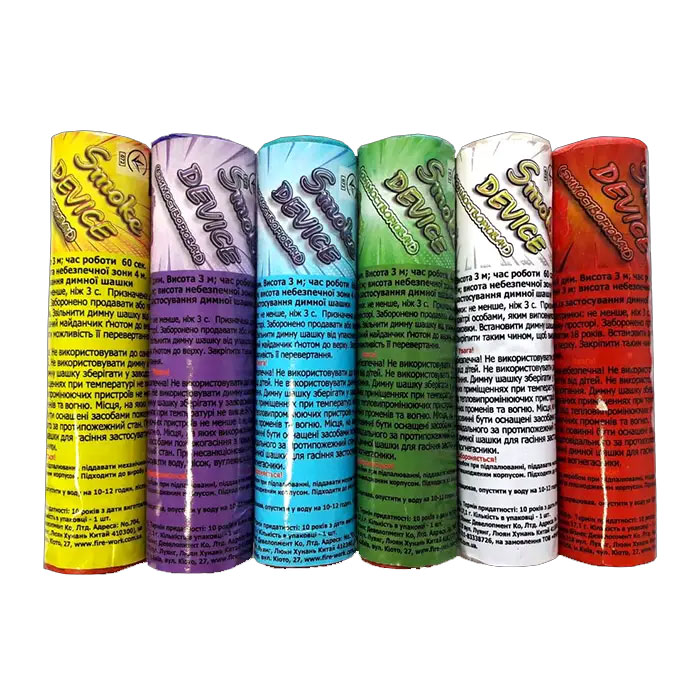 Цветной дым S-60-max набор MAXI 6шт, 45 сек, ТМ Феєрверк