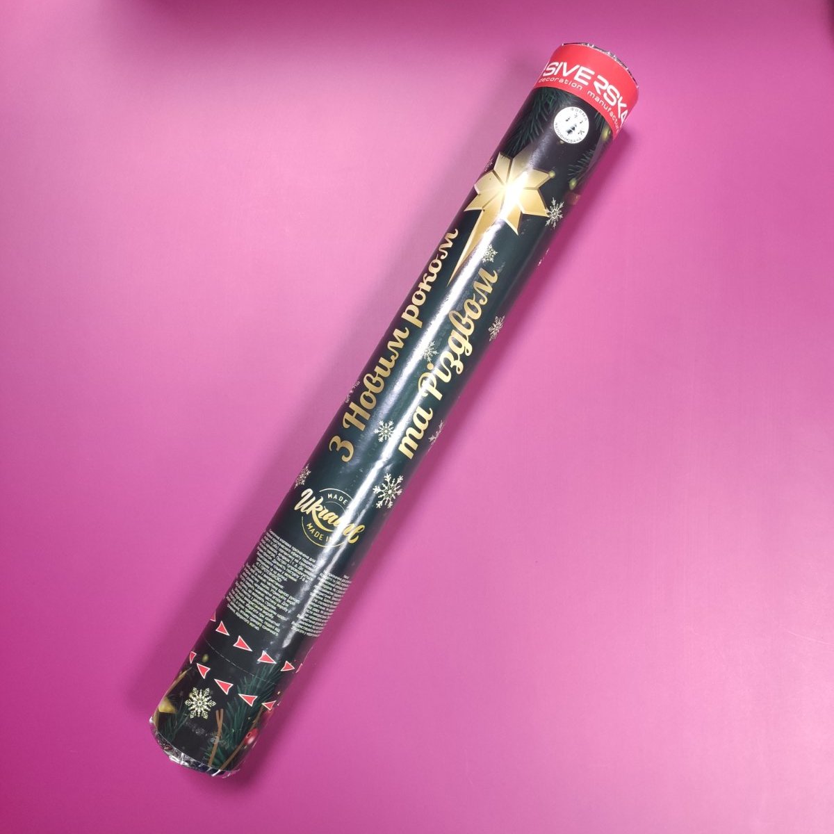 Хлопавка Новорічна NVR00040 від СІВЕРСЬКА. Має розмір 40 см. Наповнення - ялинки, сніжинки .