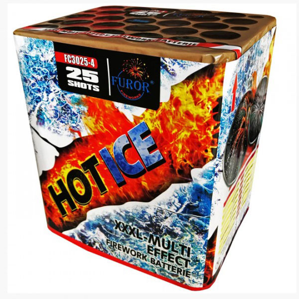 Салют FC3025-4 Hot Ice работает примерно 25 секунд.
