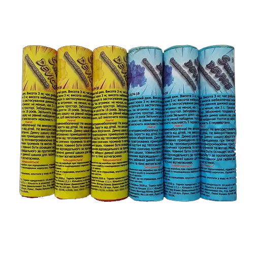 Цветной дым S-60-Ukraine набор Україна 6 шт (жёлтый и голубой по 3 шт), 45 сек, ТМ Феєрверк